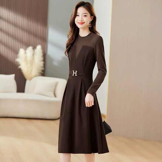 長袖 ワンピース ミドル丈 Aライン 切り替え ワンピ 通勤 00276