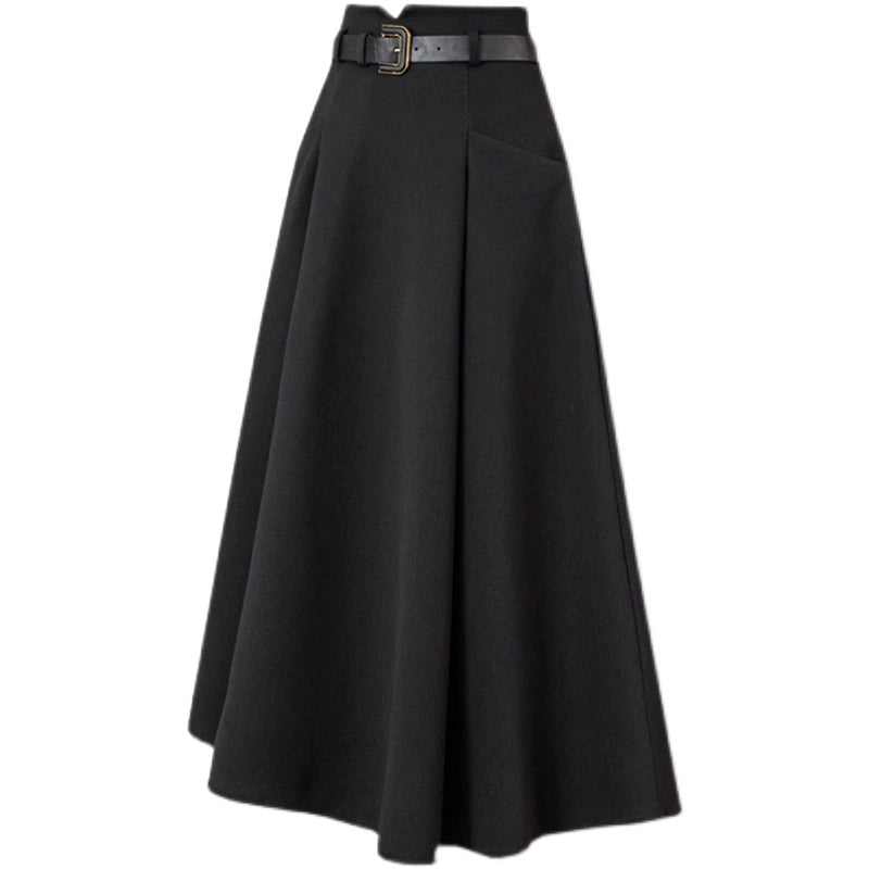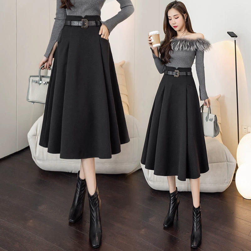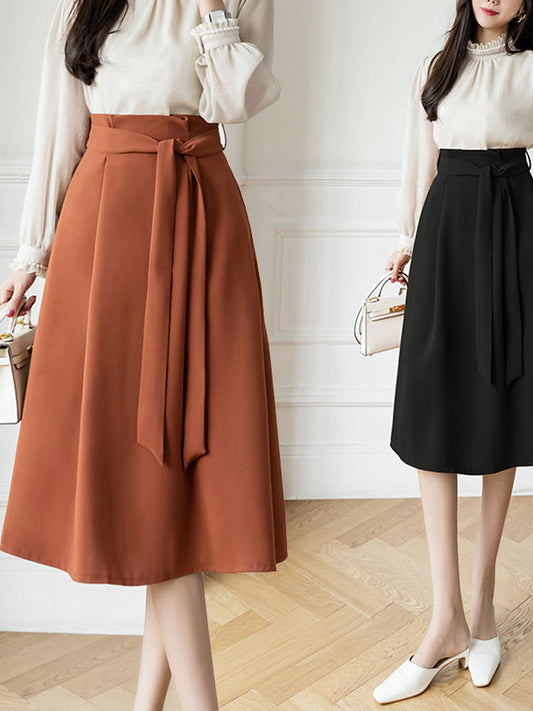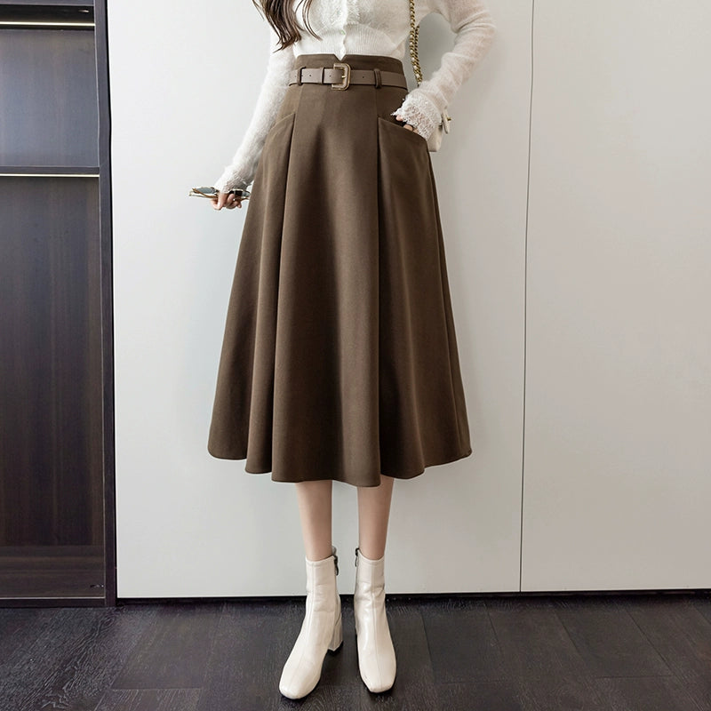 フレアスカート ハイウエスト ベルト付き Aライン ミドル丈 通勤 スカート 00278