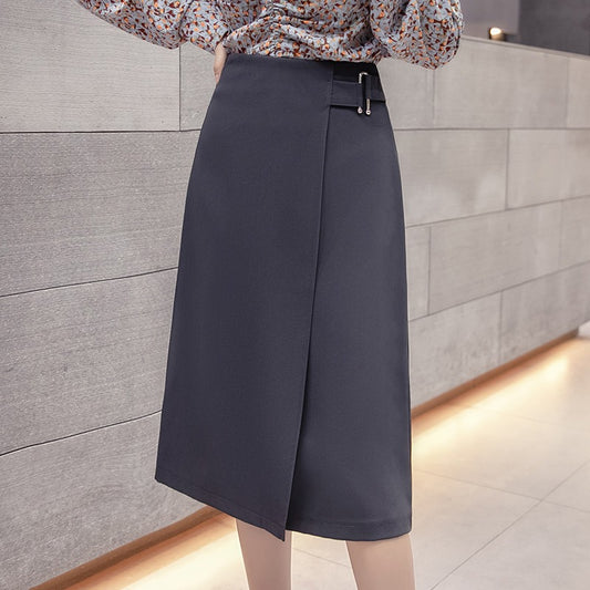 Aライン ミドル丈 ハイウエスト スリット スカート